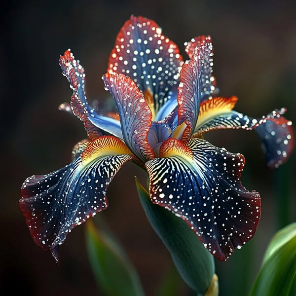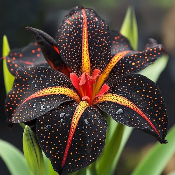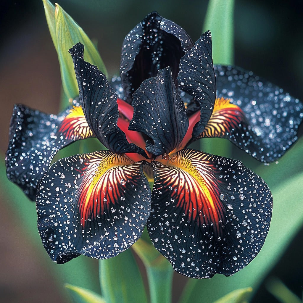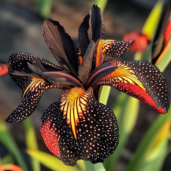 Black and Red Leopard-Patterned Iris (Iris spp.)