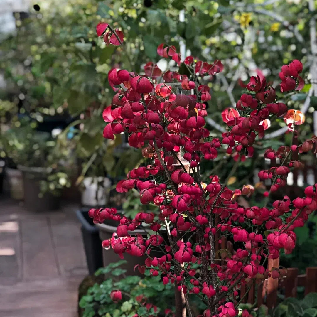 The Burning Bush is famous for its fiery red foliage in the fall. As temperatures cool. its deep green leaves transform into a blaze of red. creating a spectacular display that lights up any garden. This bold color makes it a fantastic choice for adding autumn interest to your landscape. 🍂🍷