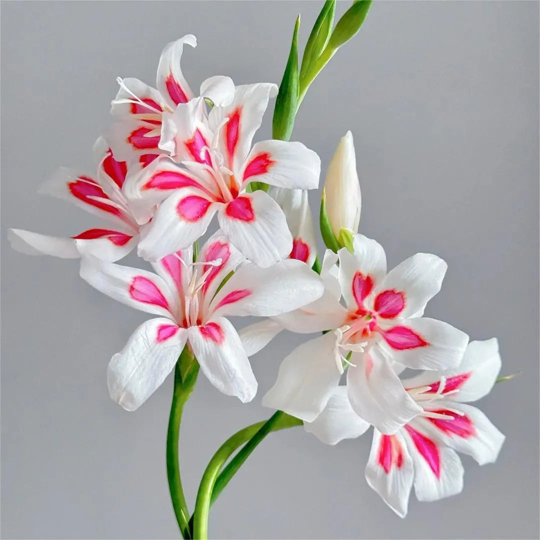 💖Cat's claw gladiolus is much smaller than ordinary gladiolus. and its branches are thinner. Overall. it gives a delicate and beautiful feeling. The pink patterns on the petals resemble pink kitten paw prints on the petals. which makes the whole flower look soft and sweet. and makes people feel happy just by looking at it.