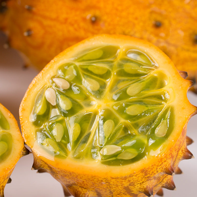 🟠The fire ginseng fruit is the horned melon. which is native to the Kalahari Desert in Africa. The flesh of the thorn melon is delicate and multi-seeded. It is gelatinous like a cucumber and has a sweet taste. which tastes like a mixture of banana. lemon and cucumber.