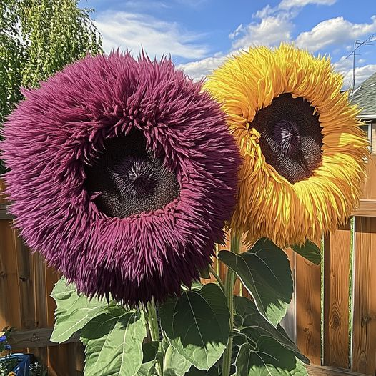 - Fluffy. Double Blooms 🌼The Giant Teddy Bear Sunflower is known for its spectacular. fully double blooms that resemble a big. soft pom-pom. Each flower is packed with dense layers of golden-yellow petals. giving it a fluffy. almost plush appearance.
