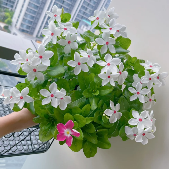 🌸 Function: Periwinkle is suitable for planting in flower beds. courtyards. balconies. etc.. and is an ideal choice for beautifying the environment. It has a long flowering period and bright colors. and is a common variety in urban greening and home gardening.
