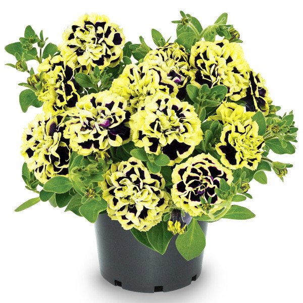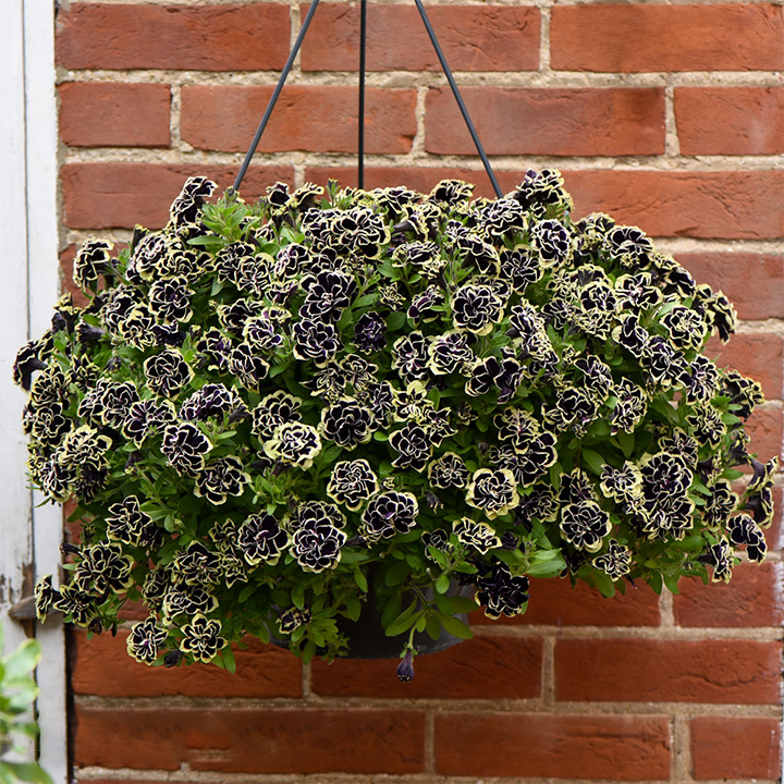 Astonishing new petunia color. 'Midnight Gold' seduces with elaborate royal purple double blooms with light-gold tips. Robust 8–10" plants with exceptional branching produce a profusion of glorious 2" blooms. Let them cascade from hanging baskets and containers. or roll out a carpet of blooming. one-of-a-kind color.
