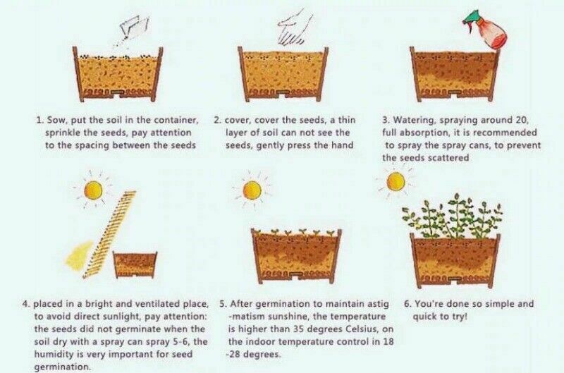 Some of the small ones can be sprinkled right on the soil surface. Larger seeds will need to be buried. After planting seeds. you have to moisten the newly planted seeds. To speed up germination. cover the pots with wet paper or a plastic dome. This helps keep the seeds moist before they germinate. When you see the first signs of green. you have to remove the cover.