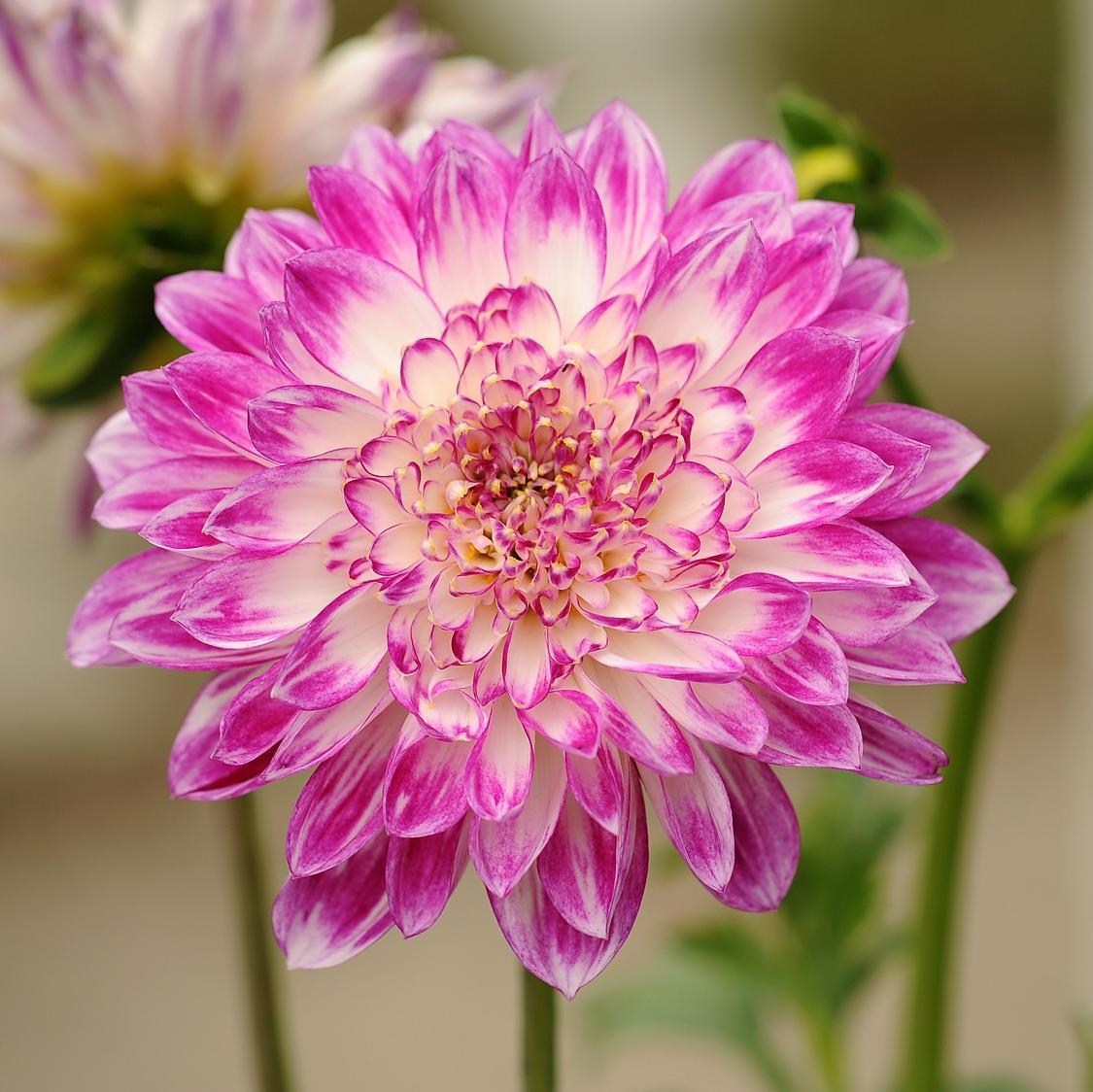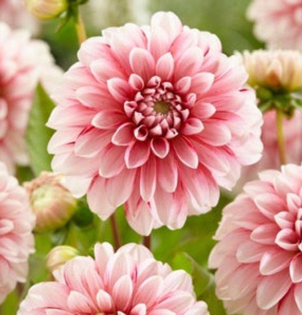 'Strawberry Cream' is a beautiful. high producing pink and white dahlia with straight stems. and beautiful coloring that is so easy to blend into bouquets.