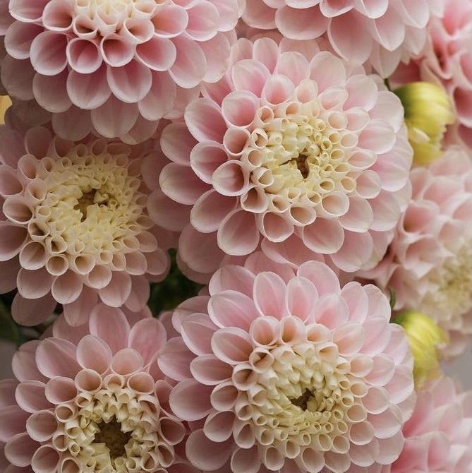 'Wizzard of Oz ' is a lovely ball with the most beautiful buttercream button centers on soft pink lollipop shaped blooms. Prolific bloomer. but harvest on the early side because she drops her petals at maturity.